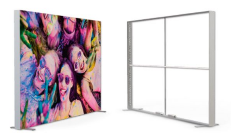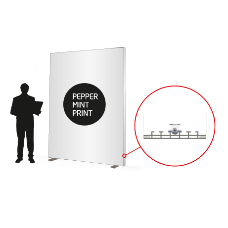 Der MULTIframe SIDELIGHT von Peppermint Print in Weyhe ist ein vollflächig hinterleuchteter LED Rahmen mit einer Bautiefe von nur 12-16 cm (bis 200 cm Höhe: 12cm, ab 250cm Höhe: 16cm Bautiefe). Das einseitig und doppelseitig verwendbare Aluminiumrahmenprofil eignet sich dank der stabilen Füße hervorragend für den Einsatz als Raumteiler. Durch die spezielle Linsenform der LED Module kann man trotz der schmalen Bautiefe keinerlei Lichtpunktbildung auf der Stoffoberfläche entdecken – das Motiv wird einheitlich und schattenfrei dargestellt. Die Stoffgrafiken sind mit Gummilippen versehen, die ihnen einen perfekten Halt im Rahmensystem ohne Falten geben. Darüber hinaus ist mit diesem System ein einfacher und rascher Grafikwechsel möglich. Nicht nur die Leuchtkraft von ca. 5000 lm, sondern auch die homogene Ausleuchtung machen den MULTIframe SIDELIGHT zu einem Leuchtrahmen, der alle ähnlichen Produkte in den Schatten stellt. Alle Systemteile sind auch als Einzelteile erhältlich.