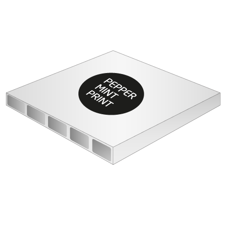 Die Platte steht mit Wellen- oder mit Wabenstruktur zur Verfügung. Das Material ist weiß und 3 mm dick. Ab einem Mindestformat von 10 cm x 10 cm können Höhe sowie Breite frei gewählt werden. Zudem sind die Platten auch mit Bohrungen erhältlich, dann befinden sich in den Ecken Löcher mit einem Durchmesser von 4 mm. Diese ermöglichen ein einfaches Anbringen. Aber auch ohne Bohrung sind die Platten erhältlich.