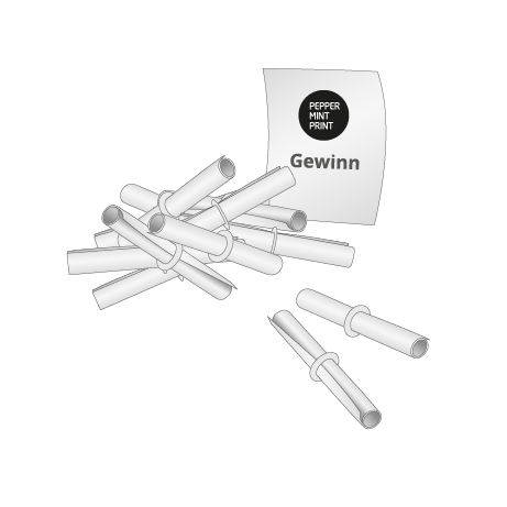 Schon fast 100 Jahre alt, aber noch immer Bestseller - die Röllchenlose von Peppermint Print in Weyhe. Das liegt sicher an ihrer Einfachheit, am Rascheln in der Losbox und an der Spannung beim Öffnen der Lose.